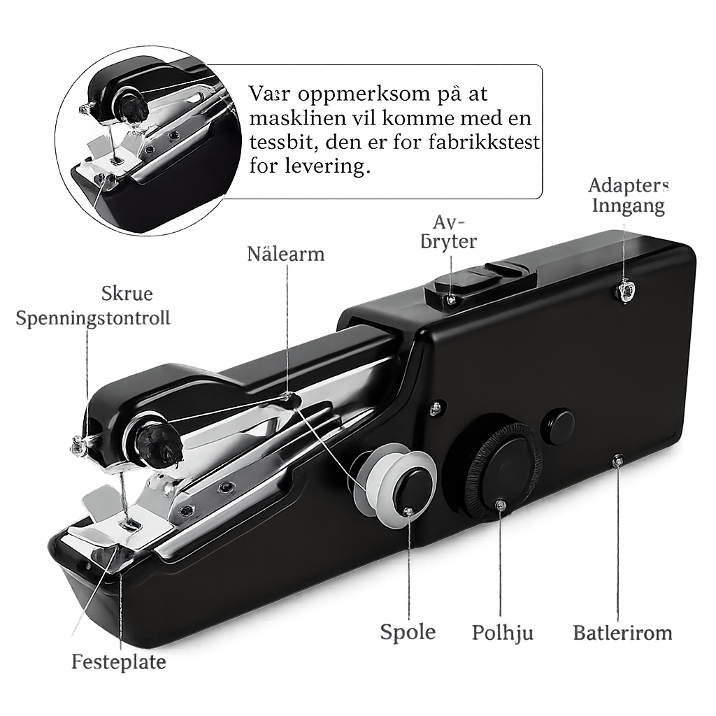 Egnet for mange typer stoffer som klær, gardiner, puter og små reparasjoner i hverdagen.